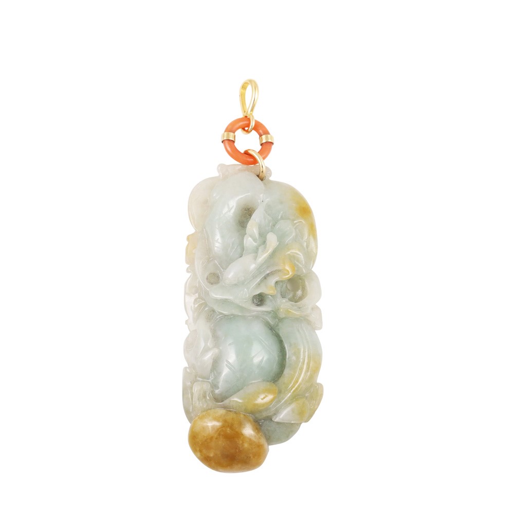18KT GOLD PENDANT SET WITH JADEITE, RUBIES AND DIAMONDS