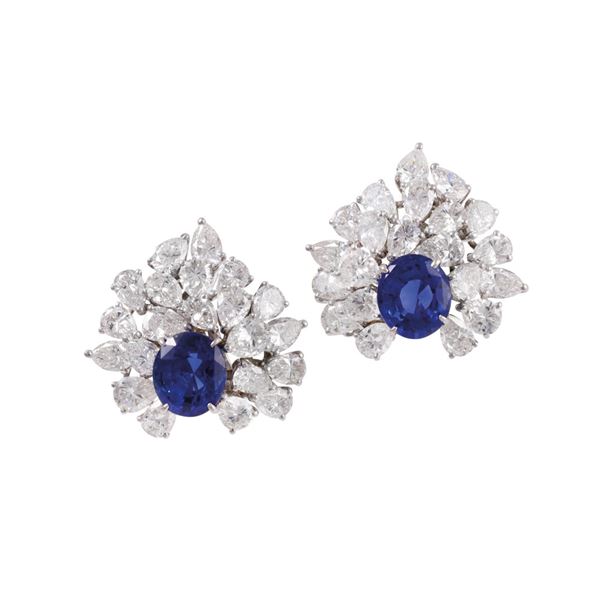 PLATINUM EARRINGS SET WITH SAPPHIRES AND DIAMONDS