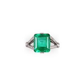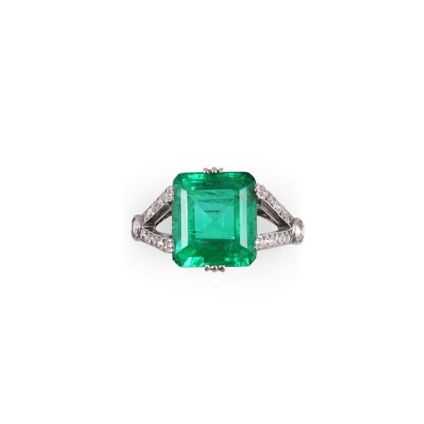 PLATINUM RING SET WITH EMERALD AND DIAMONDS